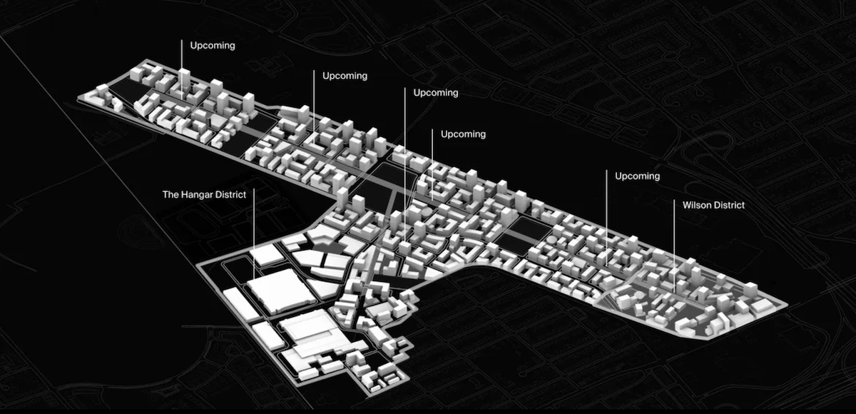 Перший етап — будівництво першого мікрорайону Hangar District на 40 гектарах, де розміститься 3000 одиниць житла, має завершитися у 2031 році.