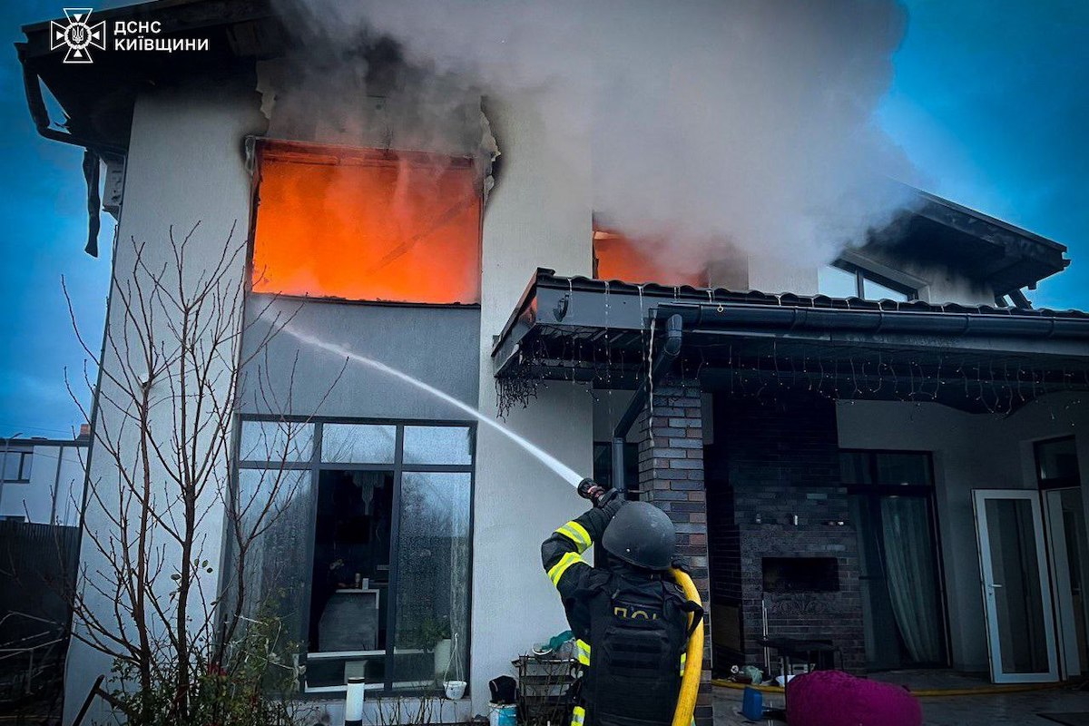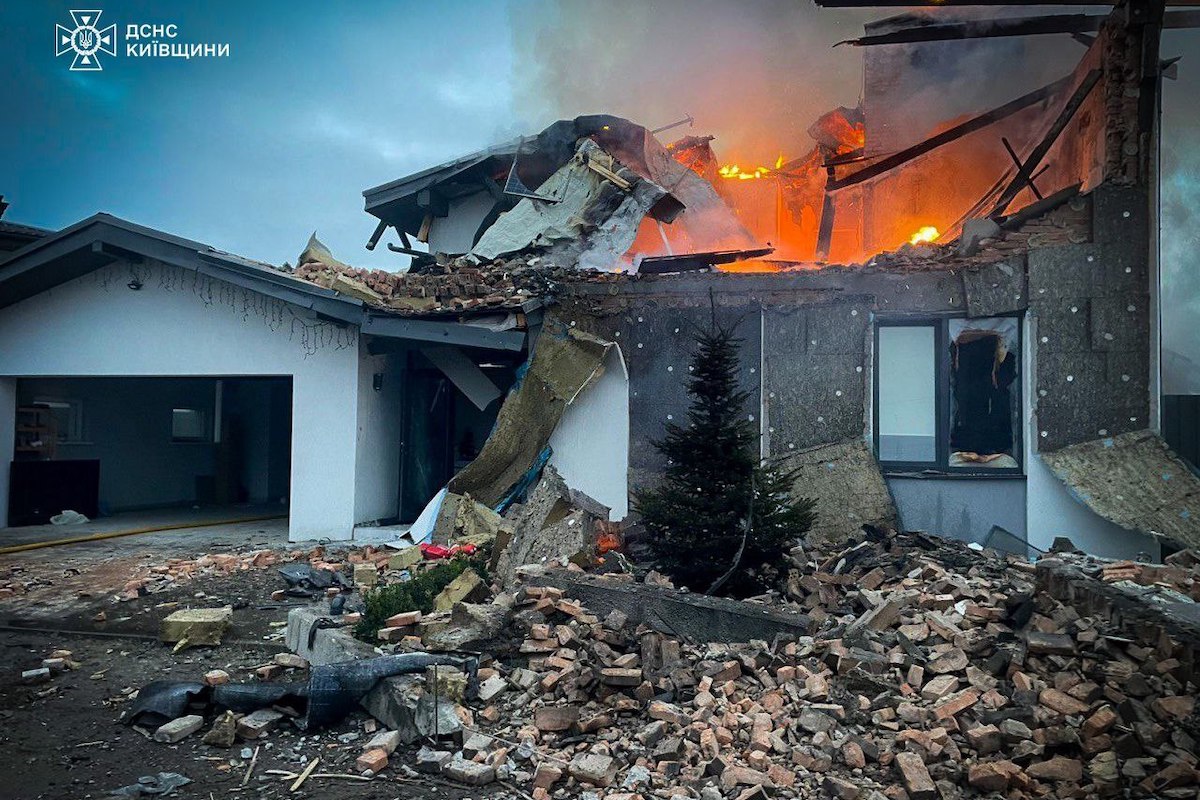 У Вишгородському районі уламки безпілотника влучили у двоповерховий приватний будинок, почалася пожежа — там загинула 76-річна жінка. Ще троє людей — 50-річний чоловік, 49-річна жінка 1976 року народження та 16-річна дівчинка — дістали осколкові поранення.