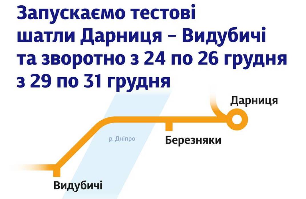 З 24 по 26 та з 29 по 31 грудня Kyiv City Express проводить експеримент і запускає додаткові шатли між станціями Дарниця та Видубичі.