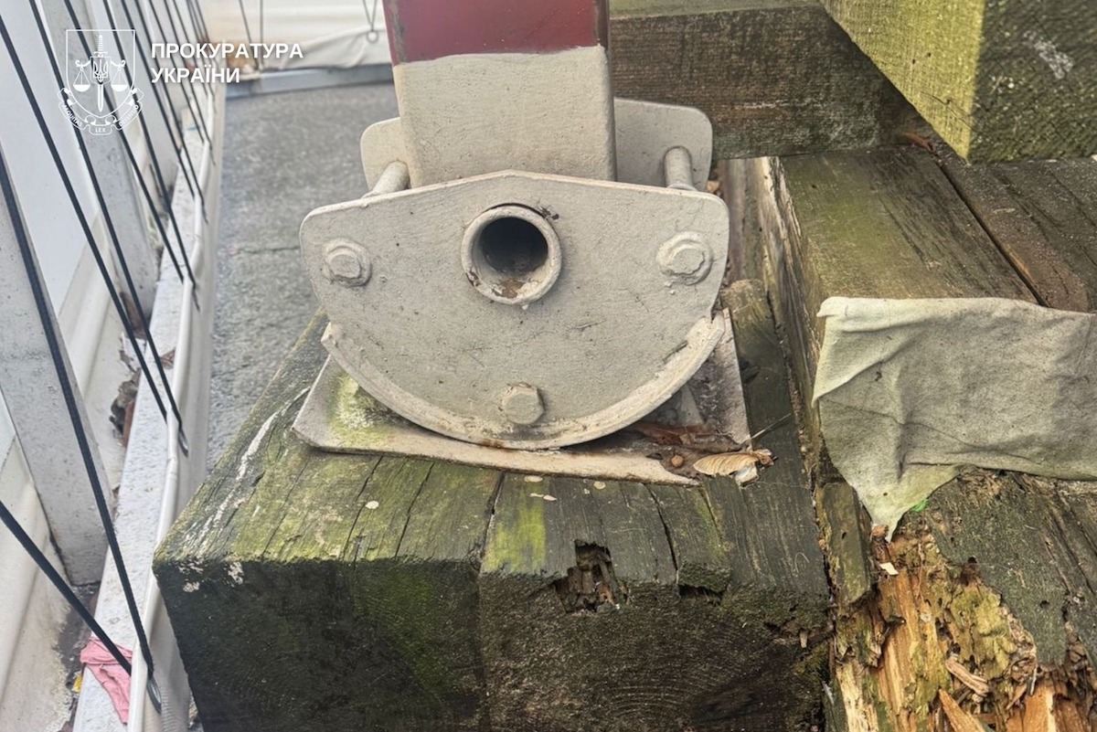 Перевірка виявила, що дерев’яні бруси, на яких розміщено металеву опору колеса, прогнили, частина з них зруйнована: має порожнини та кришиться.
