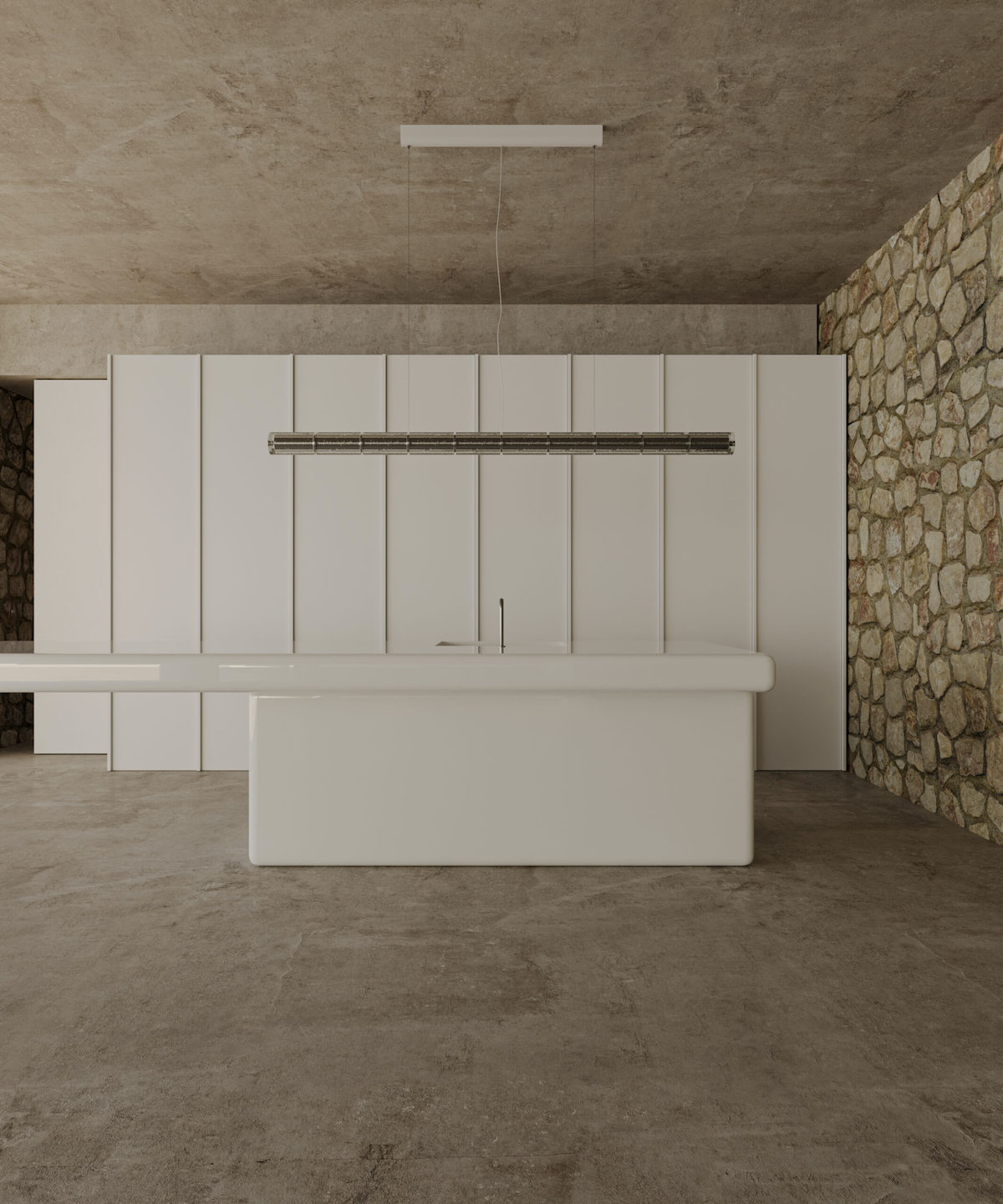 Дизайн Stone House відображає характерний для студії SHOVK підхід: лаконічний, мінімалістичний, зі стриманою палітрою. Основні матеріали — локальні породи, бетон, дерево та великі скляні площини.