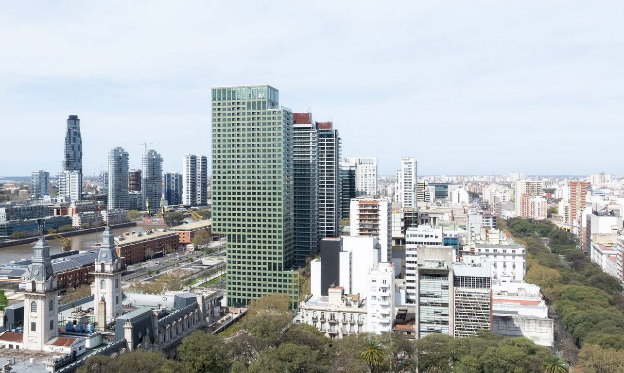 У Буенос-Айресі студія Rafael Viñoly Architects спроєктувала 16-поверховий хмарочос з цікавим дизайном — поверхи в ньому «складені» один на одного, деякі мають подвійний рівень.
