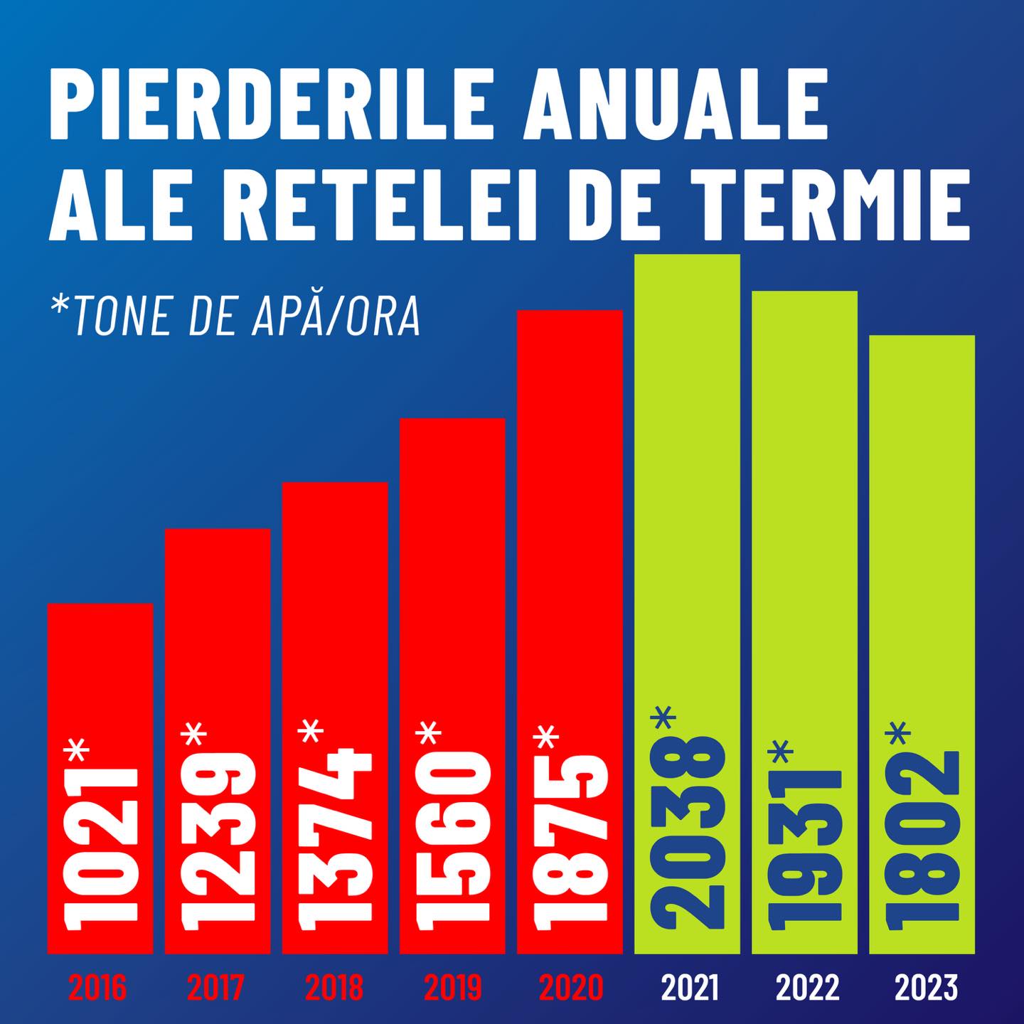 У 2023 році Євросоюз надав безповоротні 200 мільйонів євро на програму з заміни 210 кілометрів труб, розраховану до кінця 2024-го. Оголошуючи проміжні результати, тодішній мер Нікушор Дан, який зараз обіймає посаду президента країни, запевняв, що після заміни 100 кілометрів старих труб втрати скоротилися на 12%. Та навіть з «оптимістичного» графіка, опублікованого Даном, видно, що мережа тріщить швидше, ніж її встигають замінювати.