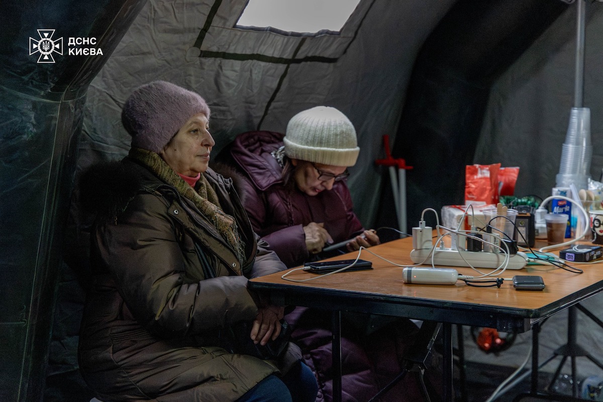 ДСНС розгортає у столиці додаткові пункти незламності. Наразі у Києві працює понад 1300 наметів, де можна зігрітися та підзарядити пристрої.