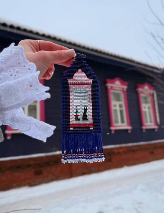 Подивіться на бісерні підвіски у формі мереживних вікон Чернігівських будинків