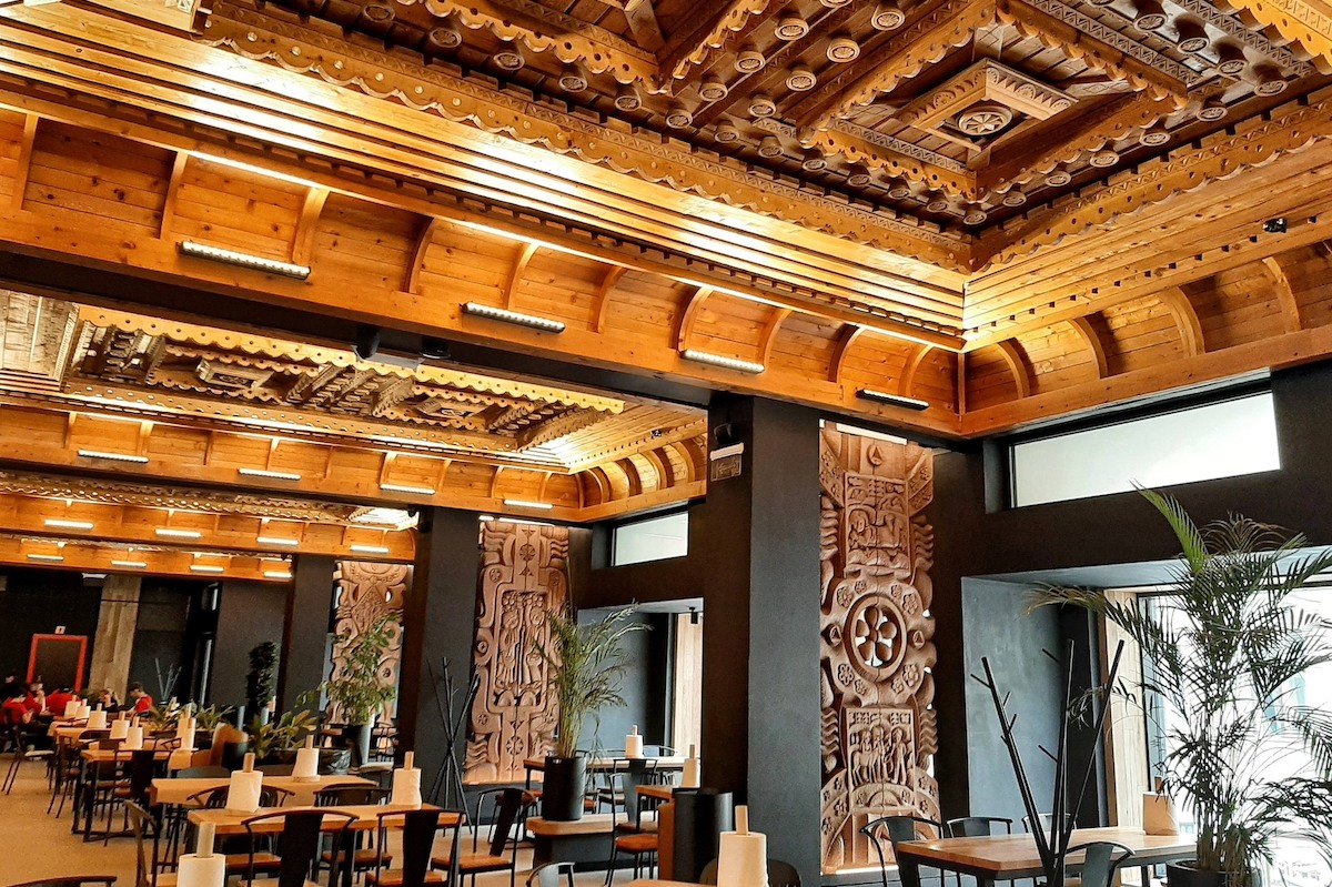 Інтер’єри було багато декоровано — і розписи, і дерев’яні панно, і глиняні рельєфи, і різьблений декор на стелях.