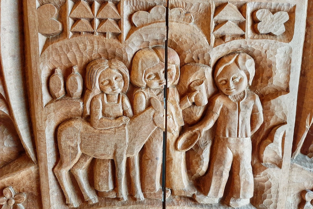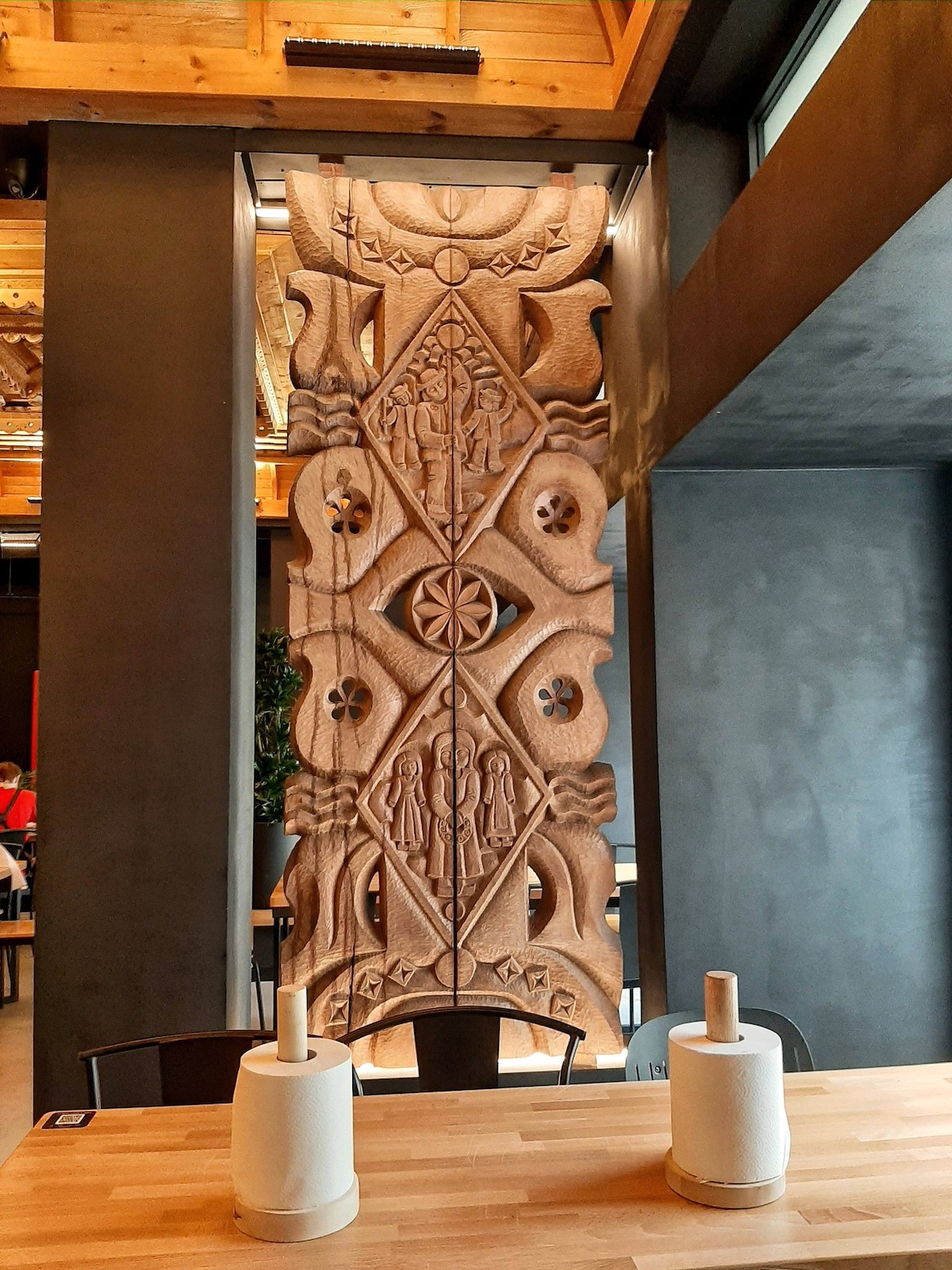 Дерев’яні рельєфи виконували художники Валентин Данилюк, Дарій Грабар і Євген Веляник.