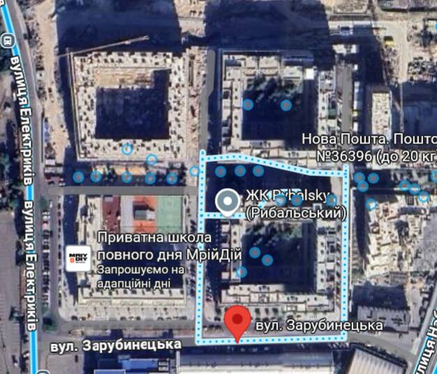 Сам ЖК знаходиться на Рибальському півострові і ця невелика ділянка для вигулу є лише поряд зі спорткомплексом «5 елемент», озелененні території, газонів, окрім самого ЖК там немає. Також на мапі видно, що мешканцям дальніх будинків доведеться нести собаку пару сотень метрів. Навіть якщо вона велика і може важити 20 або й 30 кілограмів.