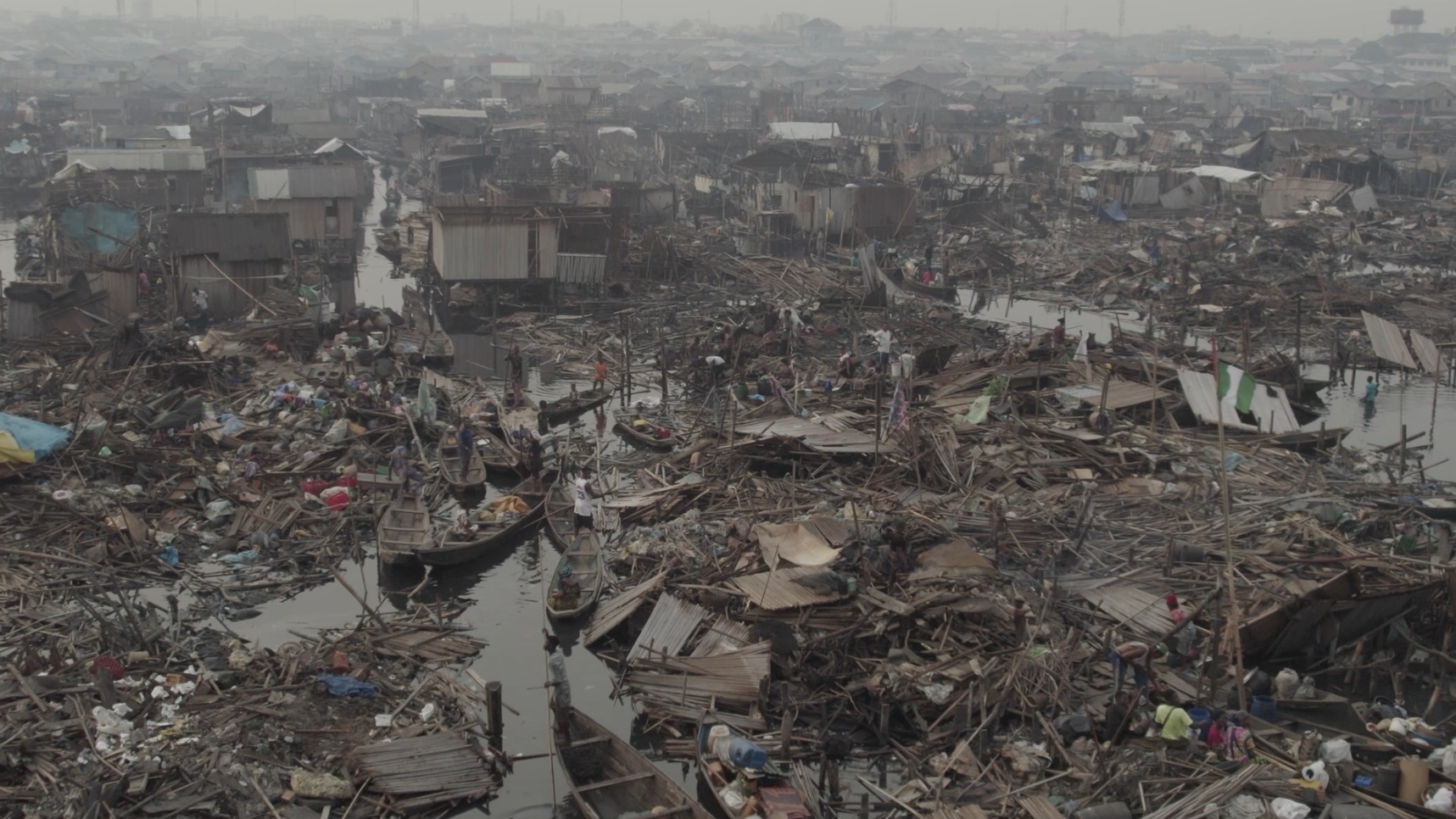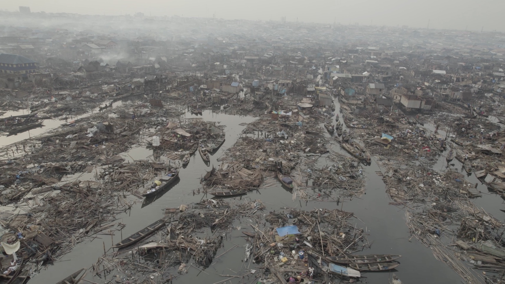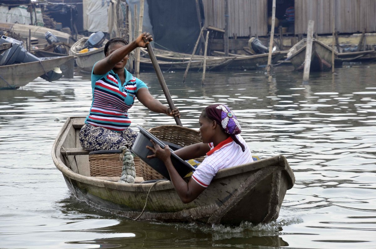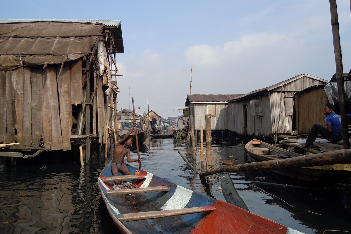 Самобуди Макоко тримаються на палях, намість вулиць — канали, якими мешканці пересуваються на каное.