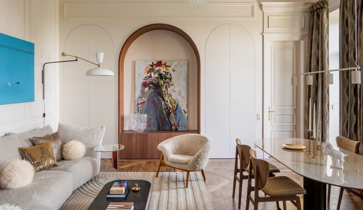 Архітекторка вдалася до експерименту зі змішуванням стилів різних епох, включно з ар-нуво і ар-деко. До процесу вона підійшла з дрібкою іронії та без страху перед помилками.