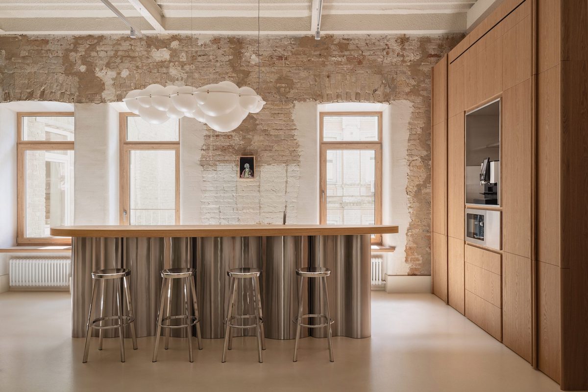 Бюро Ater Architects спроєктувало інтер’єр офісу для креативної агенції Banda у будинку початку ХХ століття в центрі Києва. Замовники забажали, щоб простір більше нагадував квартиру. Почали з демонтажу підвісних стель, під якими виявили оригінальну ліпнину.