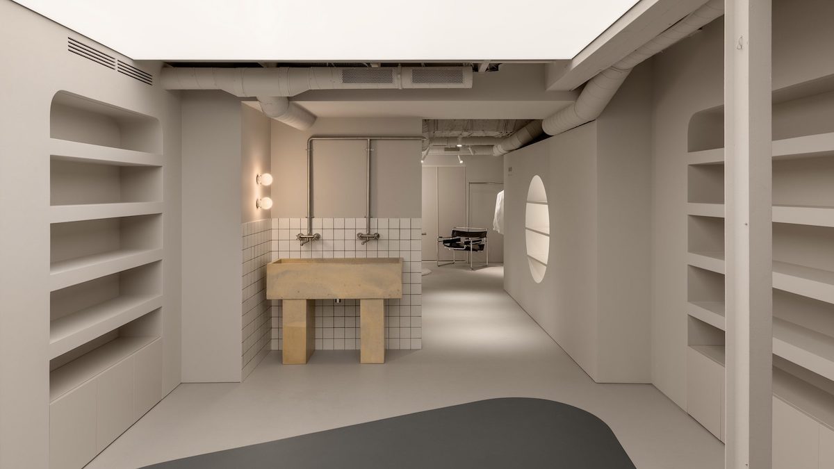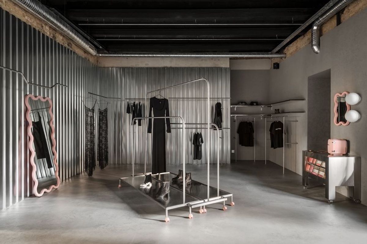 Інтер’єр для двох шоурумів Storage (чоловічий одяг) і Domaine 17 розробляла студія Temp Project архітекторки Анастасії Темпінської. У першому домінують брутальні бетонні поверхні та голі цегляні стіни. Дещо викривлена сталева стіна додає сюреалістичної динаміки.
