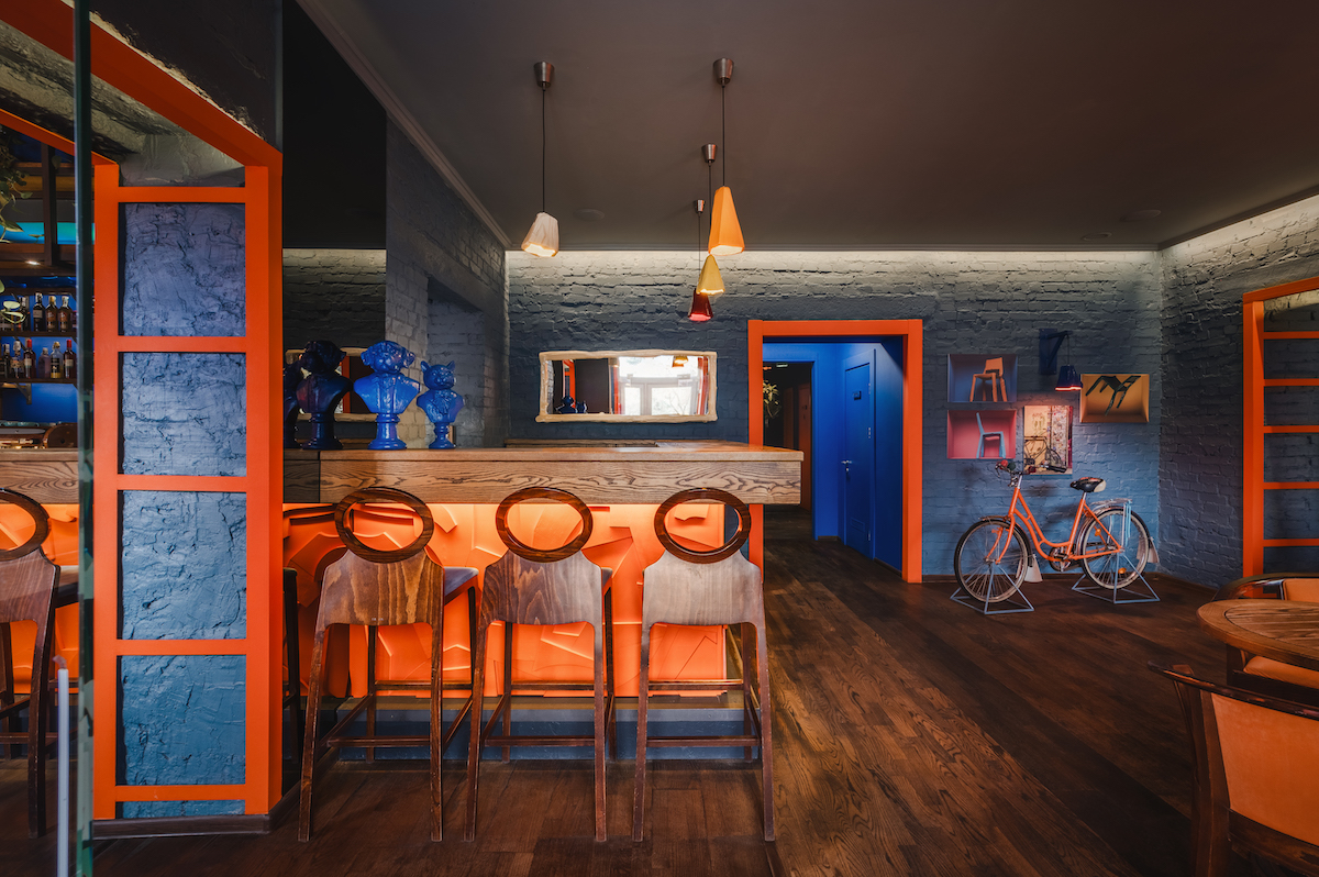 Серед умеблювання — вінтажні крісла та металеві та фанерні стільці 1980-х італійських і шведських дизайнерів.