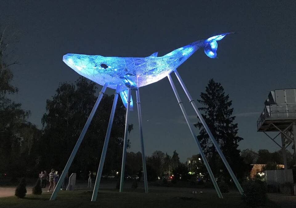 Активісти засвітили скульптуру кита на ВДНГ щоб привернути увагу до проблем чистої води в Україні