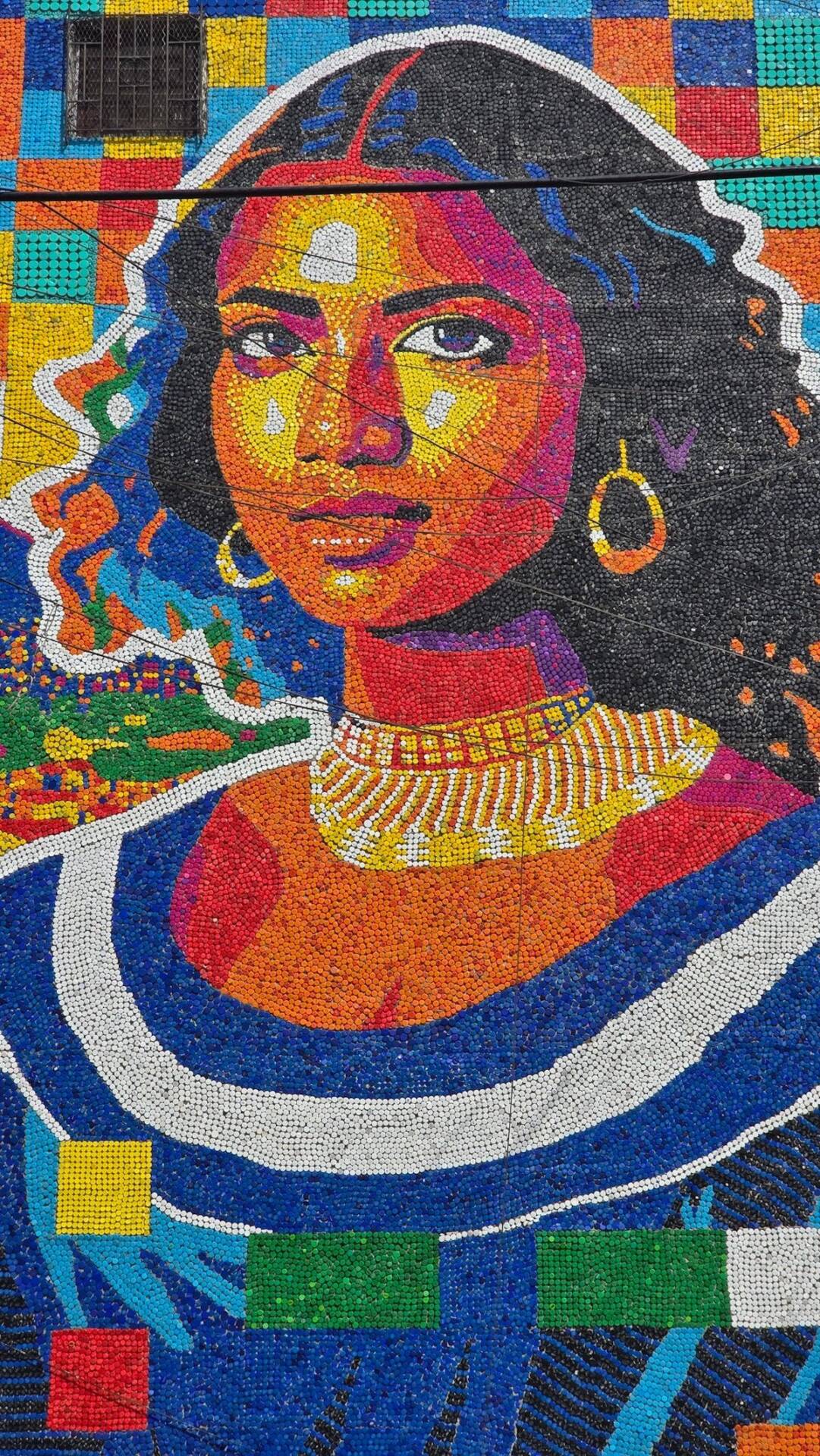 Це портрет, що нагадує «Мону Лізу» да Вінчі, але з рисами місцевих жінок: темною шкірою, кучерявим волоссям, а її одяг має кольори прапору Сальвадору.