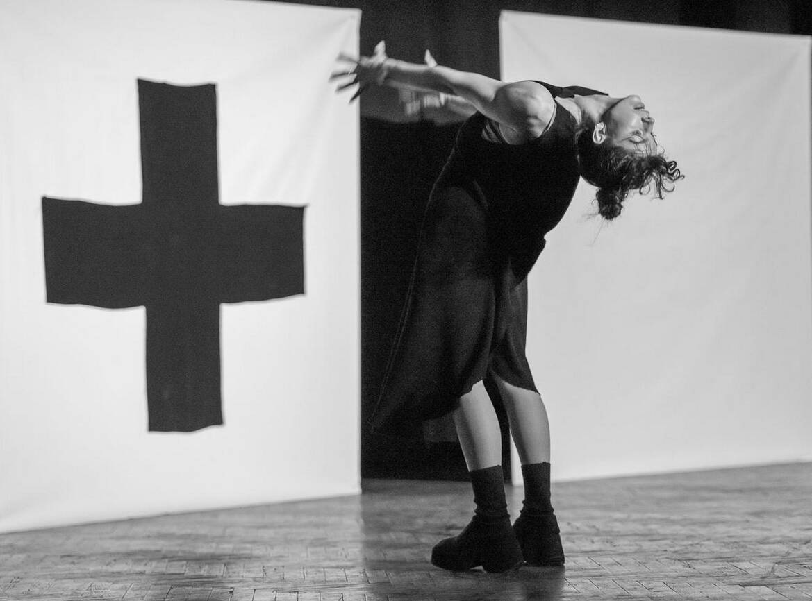 Перформанс реалізував бренд Vozianov. Три супрематичні форми: «Чорний квадрат», «Чорне коло» та «Чорний хрест» стали костюмами для танцівниці, яка через contemporary-пластику відтворила кожну форму, перетворивши абстракцію на рух і жест.