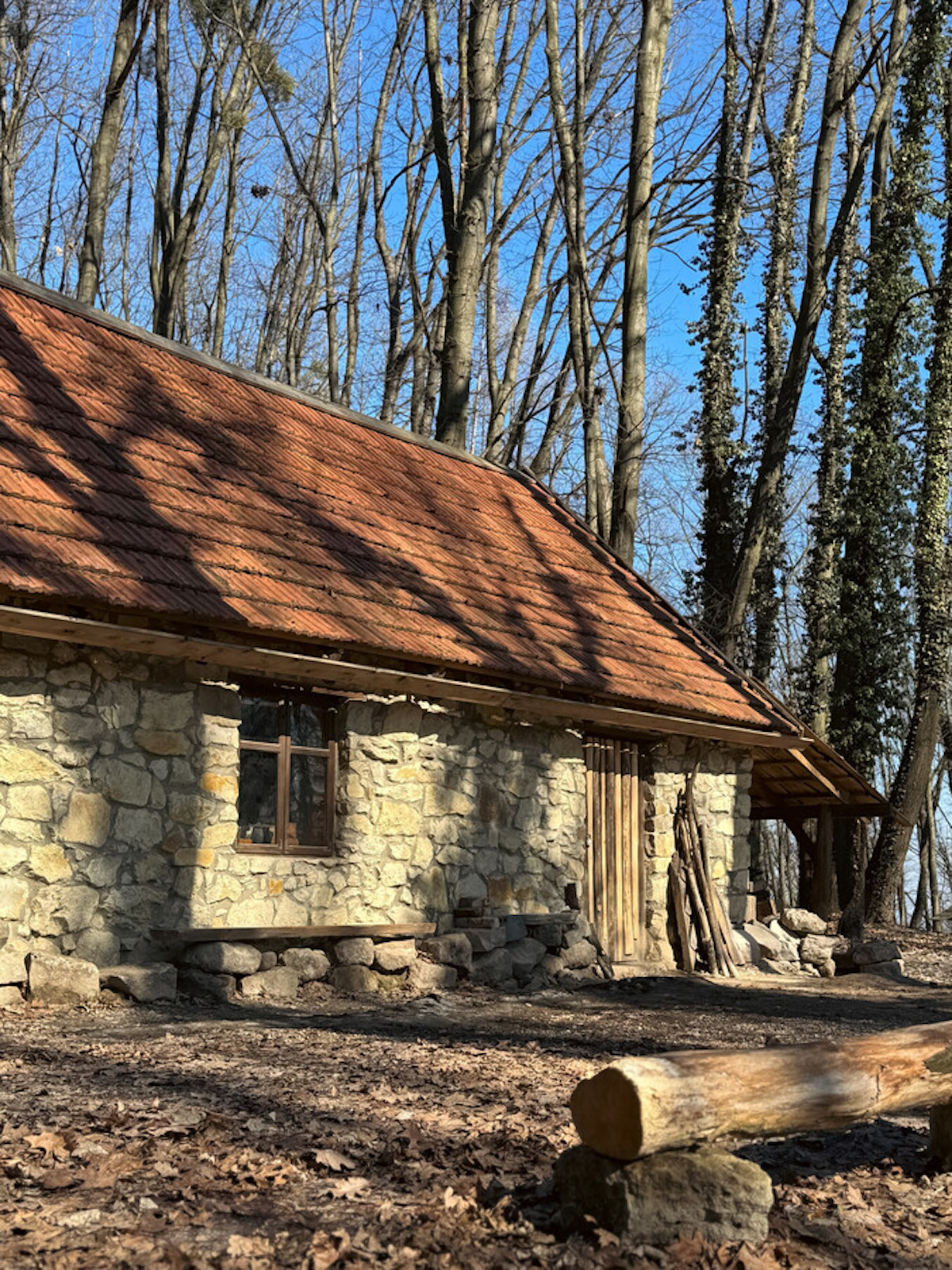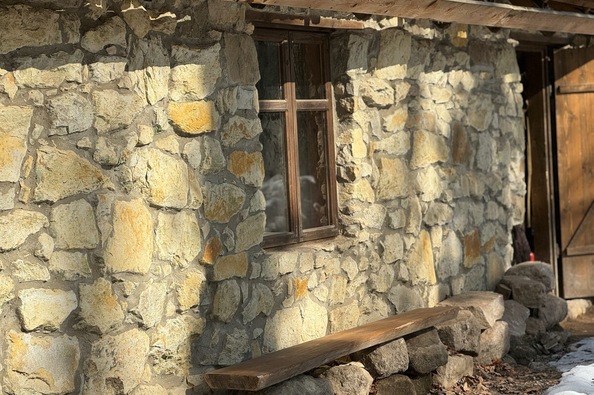 Наразі це єдина музейна споруда з каменю. Стіни збудовано з пісковика, дах покрито черепицею.