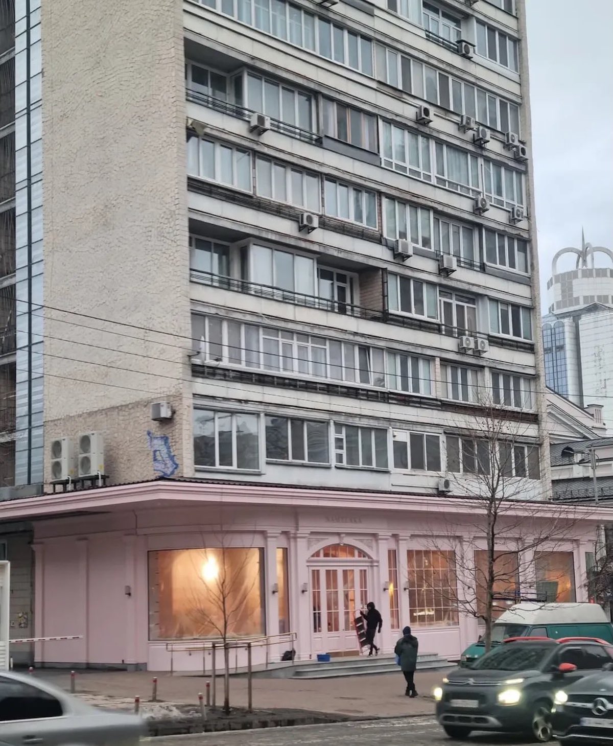 Водночас у соцмережах звертають увагу на хаотичне засклення балконів багатоповерхівки та нагадують про салон хутра, який раніше займав перший рівень.