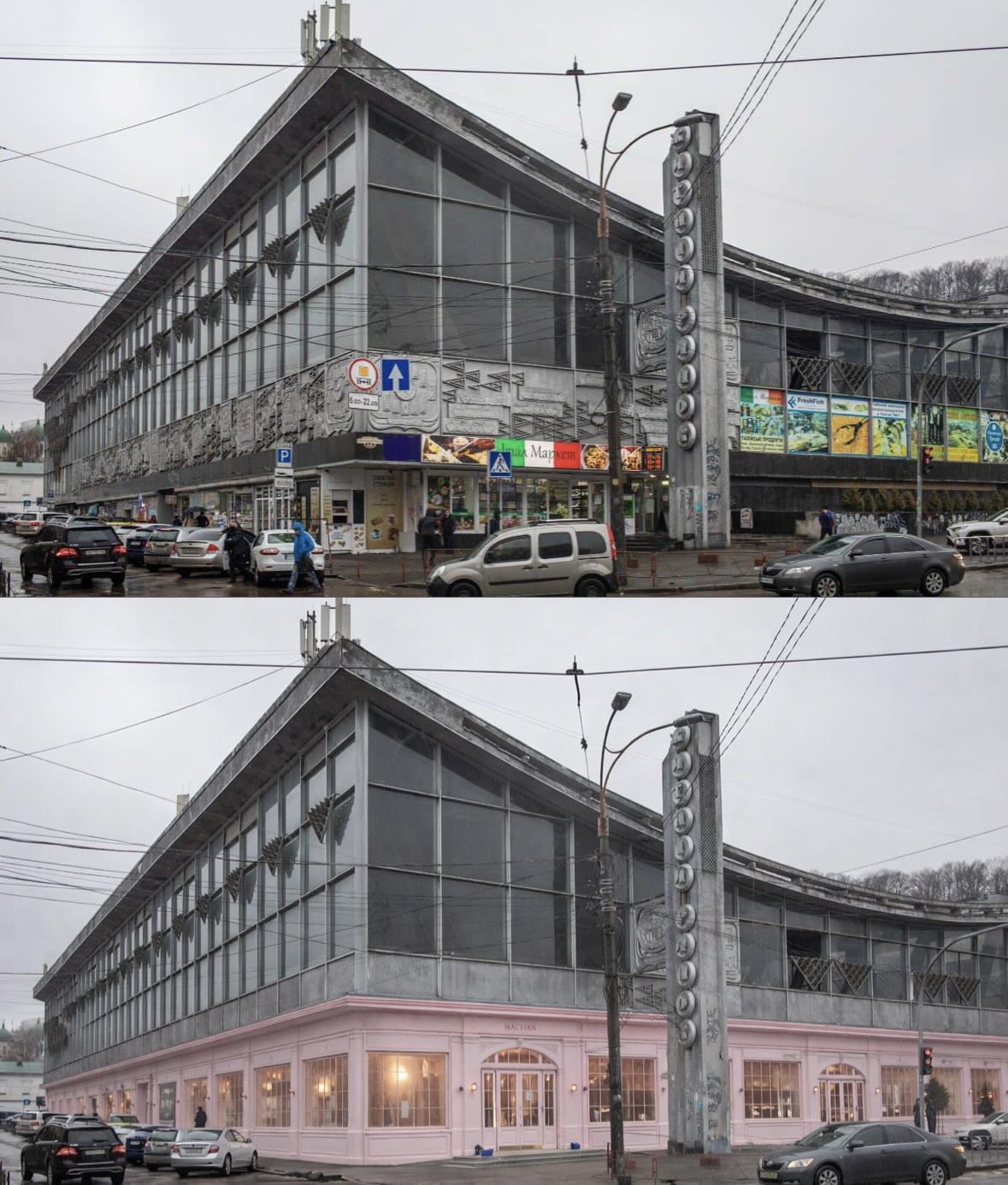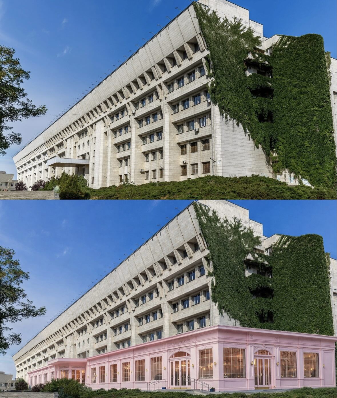 Ідею «робити таку красу по всій країні» проілюстрував фотограф Антін Пашкевич, запропонувавши оцінити, як такі ж втручання виглядали б на прикладі інших модерністських будівель: Бібліотеки Вернадського, Житнього ринку, «Квітів України» та Українського дому.