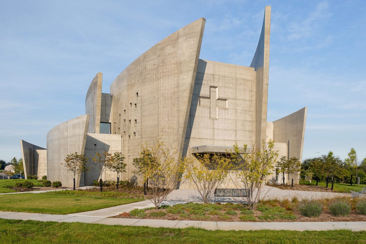 Вісім вигнутих бетонних стін, що здіймаються на 15 метрів над землею, слугують одночасно структурними елементами та символом поширення благої звістки.