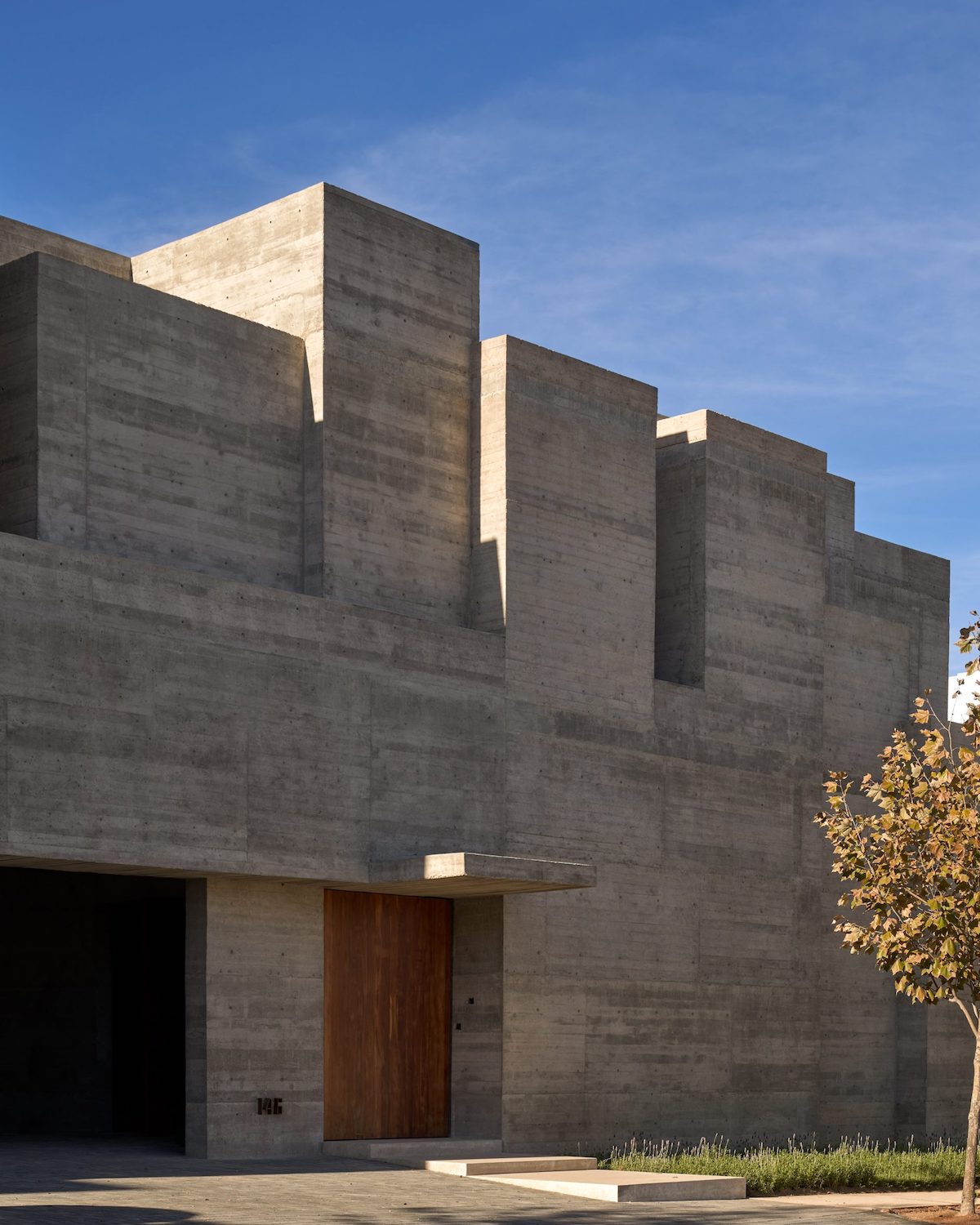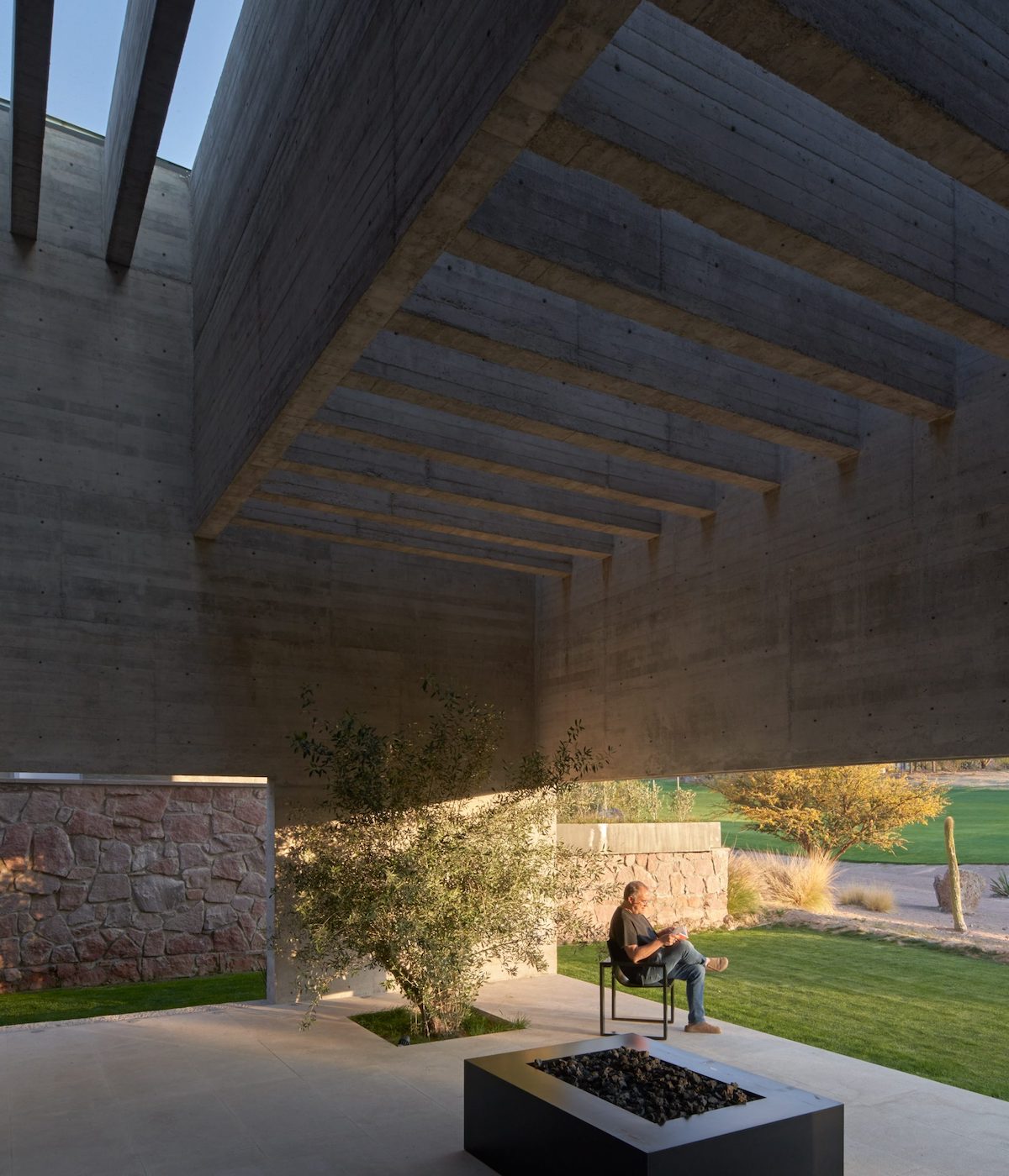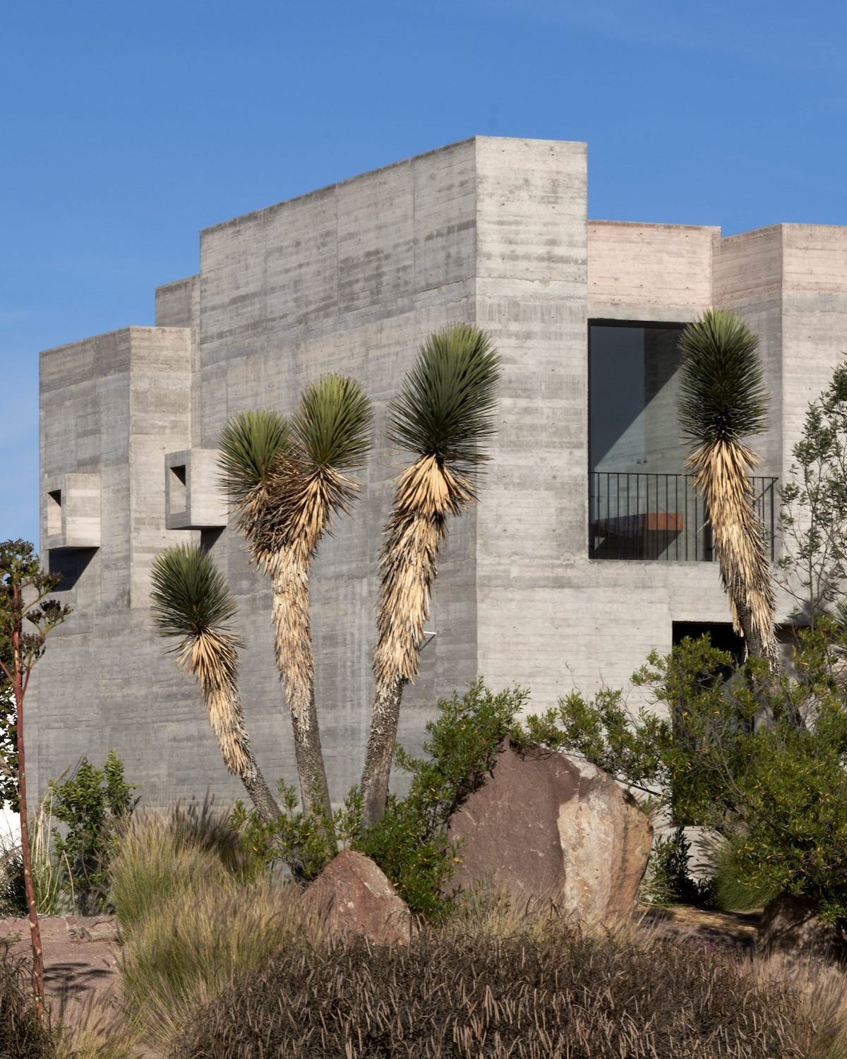 Будинок за проєктом мексиканської студії Lucio Muniain розташовано на полі для гольфу в місті Сан-Луїс-Потосі. Він повністю побудований із сірого голого бетону без оздоблень, залитого в дерев’яну опалубку.