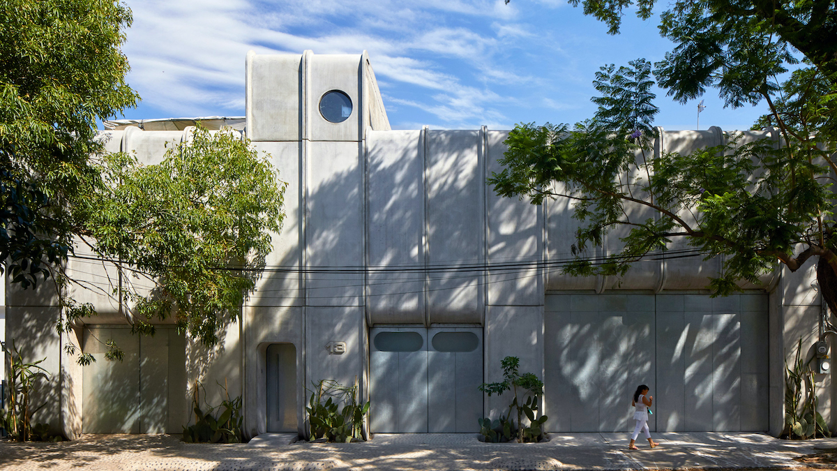 Будинок зводили після землетрусу 2017 року: завдяки дозволам Реєс і його творча команда отримали можливість побудувати собі студію в дуже короткі терміни. Тому й вирішили використати збірні бетонні панелі.
