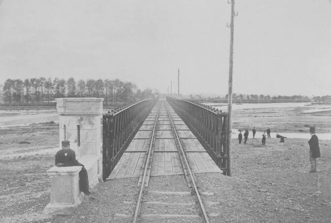Старий шляхопровід було зведено у 1888 році. Під ним проходять дві залізничні колії, через це він має складну конструкцію металевих балок та кам’яних опор.
