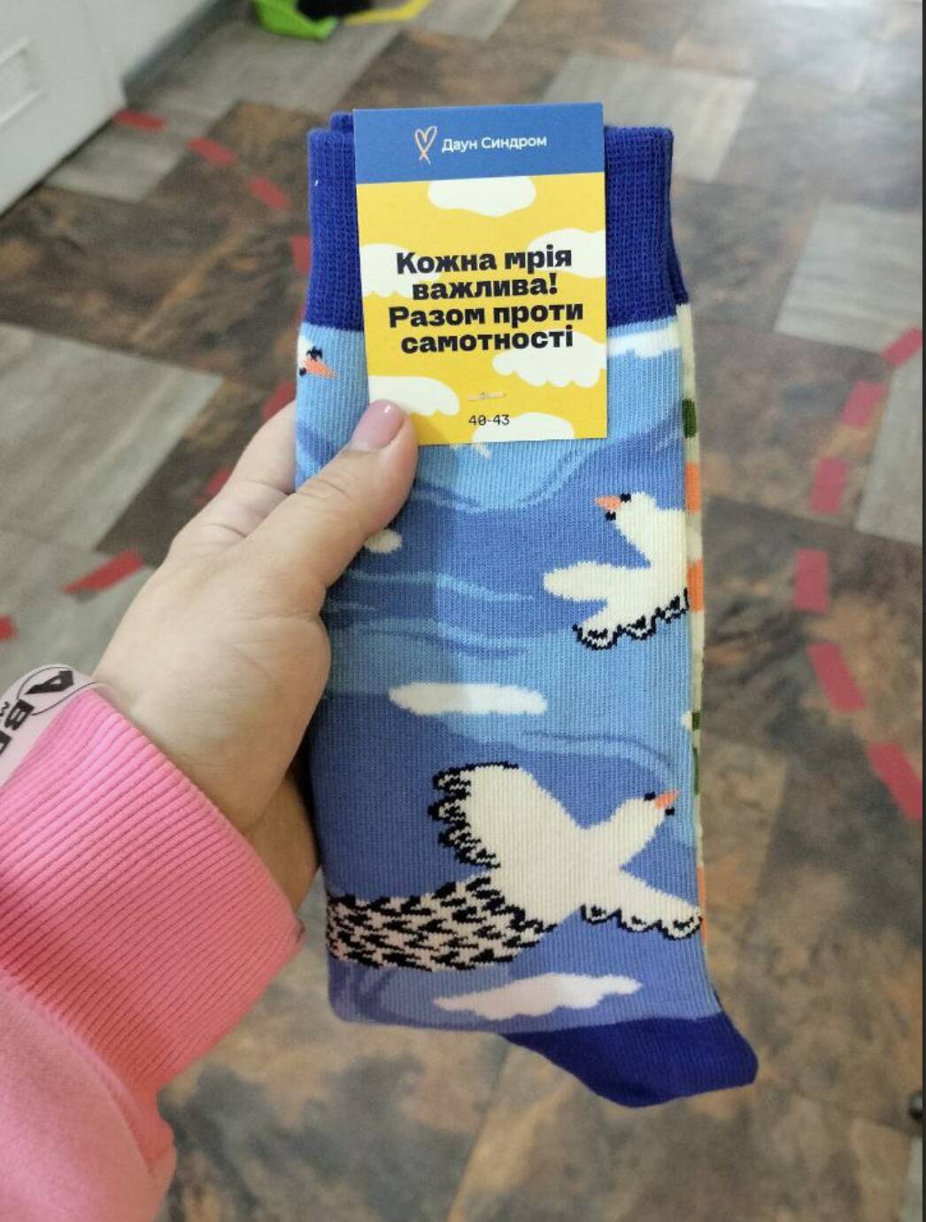 Особливого сенсу цьогорічній акції додає історія Софії — дівчини зі Львова із синдромом Дауна, художниці та спортсменки. Саме її робота «Голуб миру», що перемогла у конкурсі «Я, моя мрія та те, що я люблю», стала основою для дизайну шкарпеток. Образ голуба з прапором України символізує віру в мир, майбутнє та силу мрій — незалежно від обставин і діагнозів.