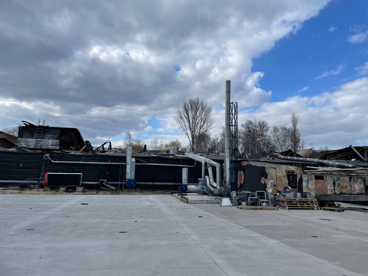 Цех вигорів повністю. Від великого виробничого комплексу залишилися лише обгорілі конструкції.