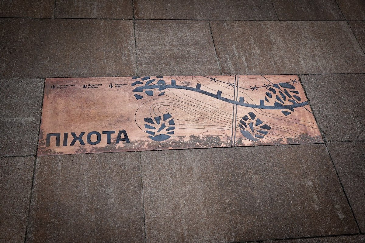 Перший пам’ятний знак на Алеї захисників встановили на початку травня 2025 року. На знаку «Піхота» зображено відбитки черевиків піхотинця, направлених у бік сходу.