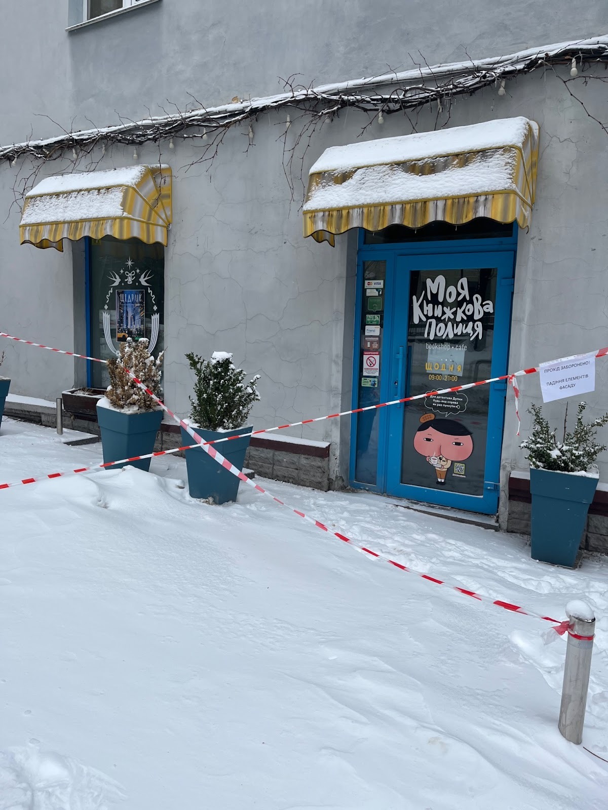 Паралельно постає питання, чи є сенс залишатися у цьому приміщенні взагалі. Будівля, за словами команди, перебуває без належного догляду і місцями становить небезпеку для людей. У день затоплення книгарня навіть не змогла відчинитися, тоді з даху падала цегла. Протягом наступного тижня ситуація не покращувалася: падали бурульки та шматки фасаду, через що доступ до приміщення залишався фактично заблокованим.