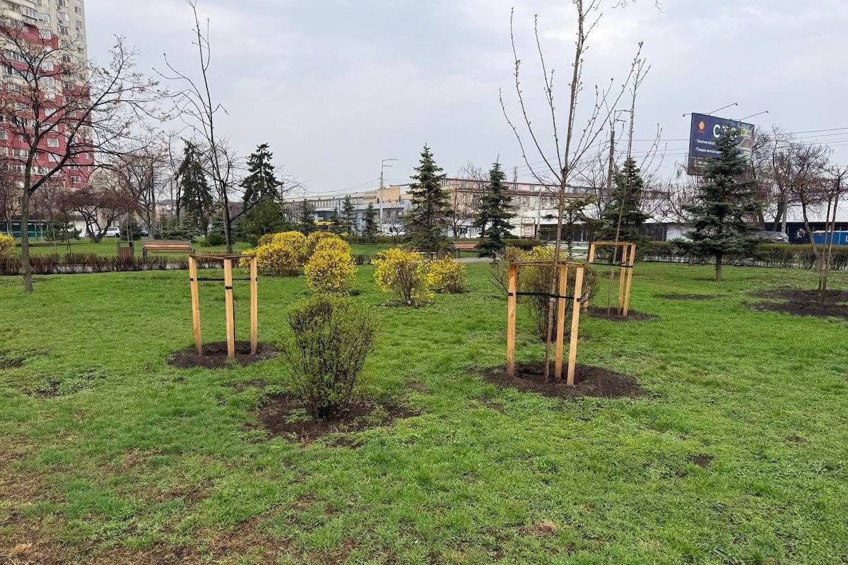 Комунальники висадили понад сорок дерев — сакури, яблуні, сосни, сливи, клени та черемху, — а також кількасот кущів, багаторічні рослини та квіти: На великій клумбі зі злакових трав і багаторічників ростуть лаванда, війник, фестука та пеннісетум.