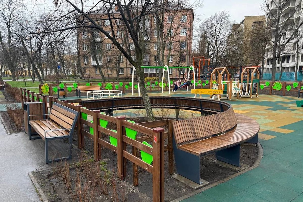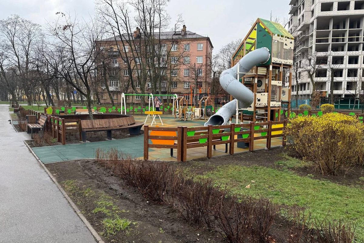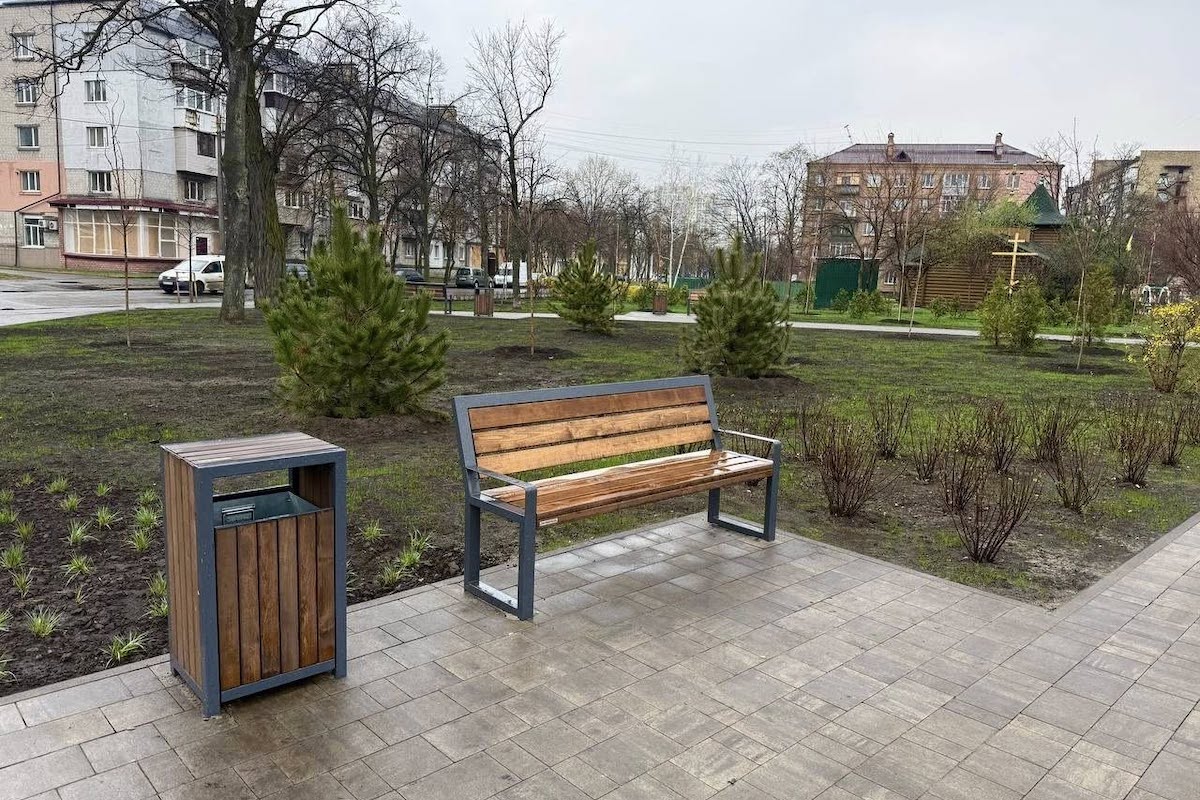 Було оновлено й сам сквер: встановили нові лави та урни, замінили мощення. Створено дитячий майданчик із гумовим покриттям і простір для фізичних тренувань.