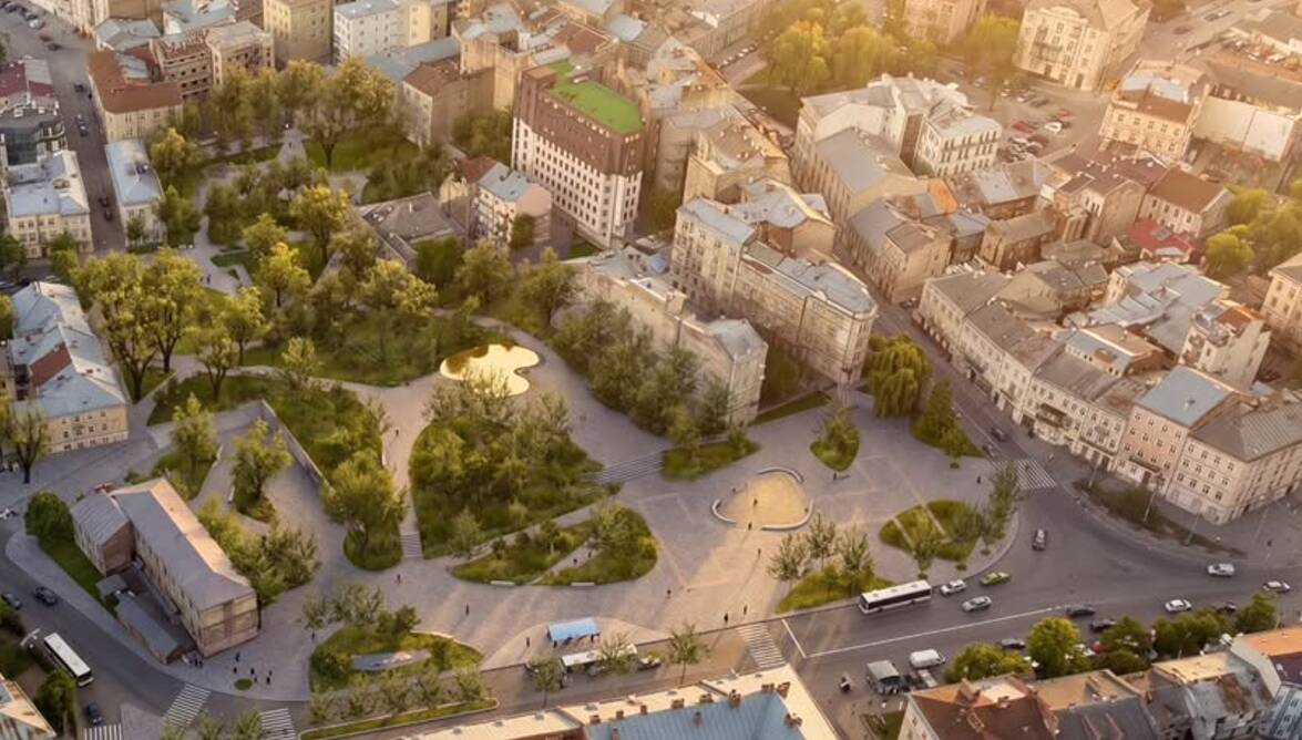Андрій Садовий поділився візуалізаціями проєкту-переможця конкурсу для нового скверу за Оперним театром у Львові.