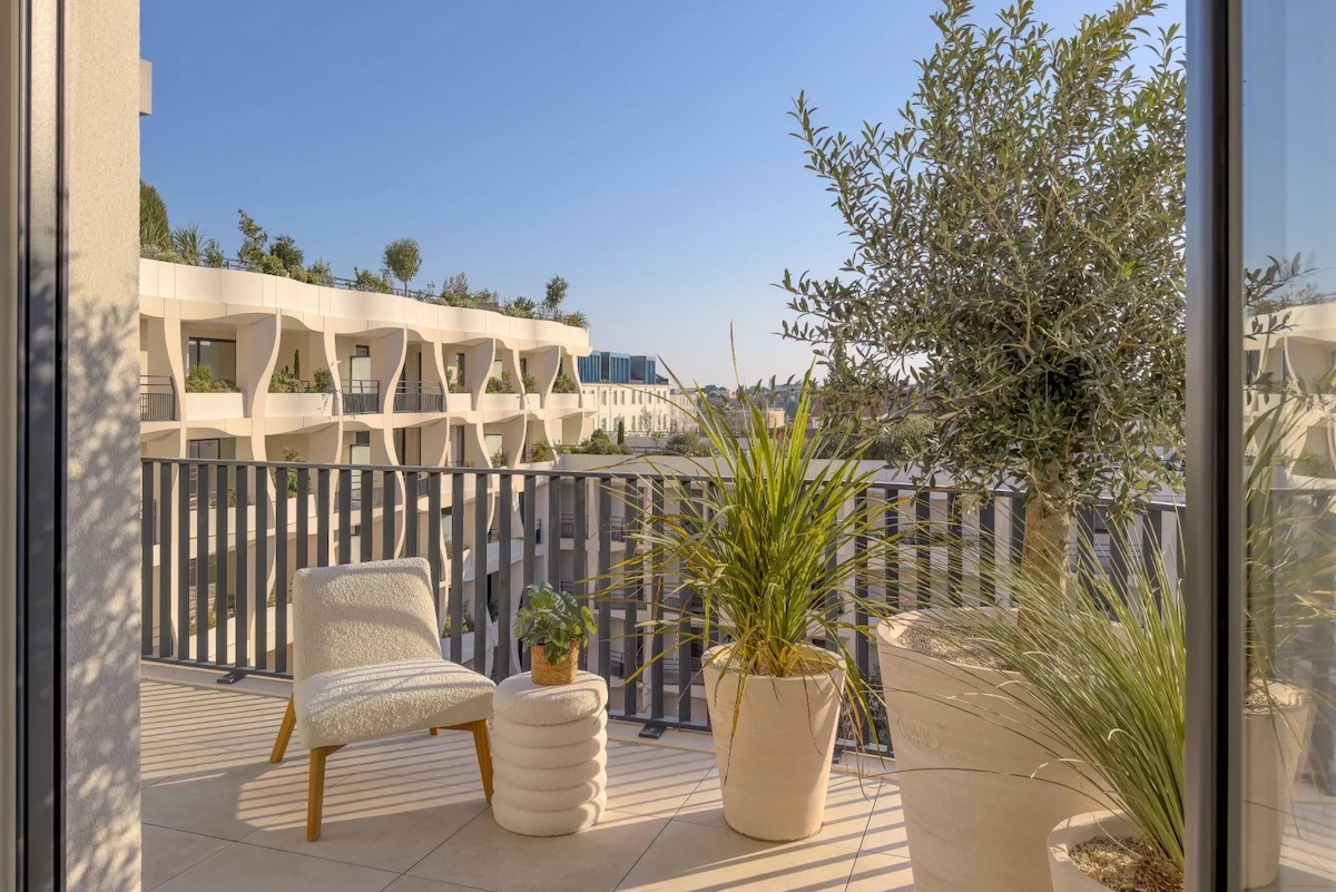 Озеленені лоджиї глибиною 3,5 метра слугують як продовження віталень. Спальні ж виходять на балкони з металевими перилами, що нагадують османівський стиль. Квартири на першому поверсі мають доступ до власних садків.