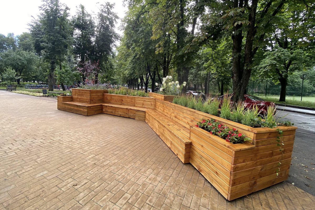 Ще одні меблі-«парклет» з’явилися у Солом’янському районі Києва Стасюк Ірина · 8.8.2025 · 8:41 вуличні мебліКиївзеленбудОзелененняПарклет