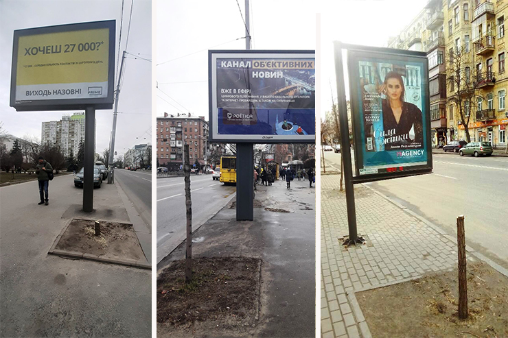 Рекламники прокоментували вирубку дерев перед білбордами в Києві: «Це – наклеп» Стасюк Ірина · 3.3.2020 · 9:28 дереваЗовнішня рекламаКиївзеленбудРеклама