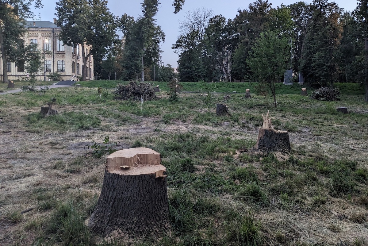 Комунальники вирізали частину парку КПІ. Ясени всихали без порятунку протягом кількох років (фото) Стасюк Ірина · 17.8.2023 · 9:14 дереваКиївзеленбудКПІ