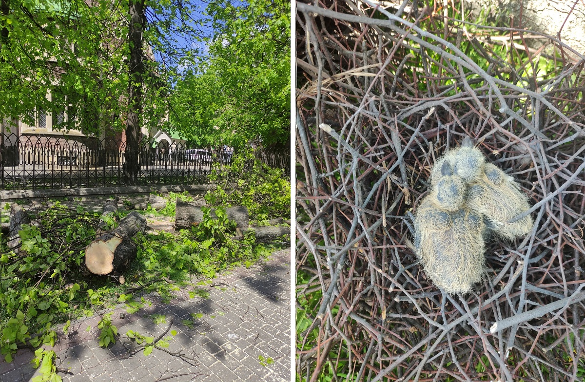 У Львові комунальники зрізали гілки, на яких були гнізда з пташенятами Крутько Дар'я · 17.5.2023 · 12:21 дереваЛьвівПтахи