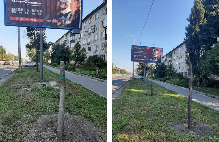 На Воскресенці спиляли молоді дерева, що закривали рекламу Крутько Дар'я · 8.9.2021 · 17:00 дереваКиївКиївзеленбудРеклама