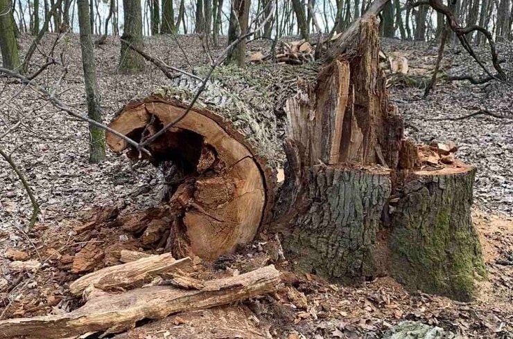 У Голосіївському парку зрубали 12 вікових дубів (фото) Стасюк Ірина · 26.3.2021 · 14:44 голосіївський лісГолосіївський паркдерева