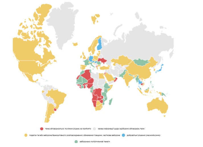 ГО ReThink дослідила політику країн світу щодо обігу поліетиленових пакетів (мапа) Анна Кириченко · 16.5.2018 · 9:47 ЄвропадовкілляПластикові пакети