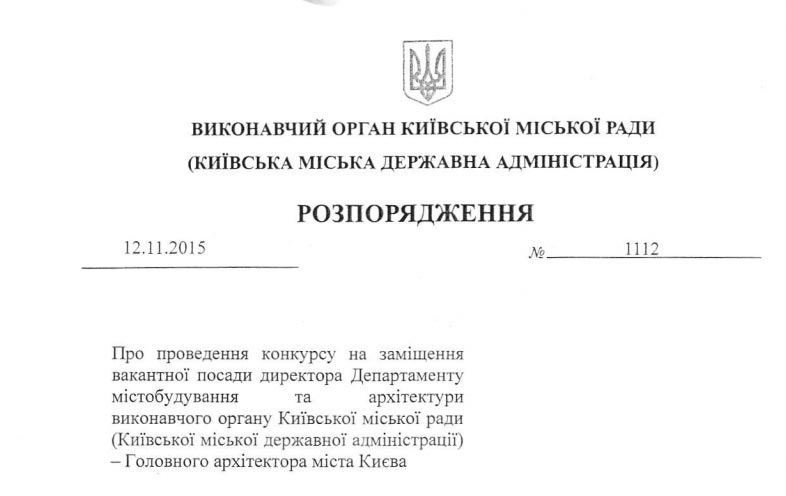 Оголошено конкурс на заміщення посади головного архітектора Києва Тарас Кайдан · 16.11.2015 · 13:46 КМДА