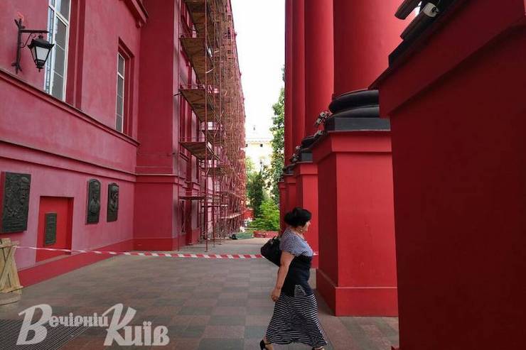 Червоний корпус університету Шевченка фарбують у яскравіший колір (фото) Стасюк Ірина · 19.7.2019 · 12:48 КНУ ім. Тараса ШевченкаРеставрація