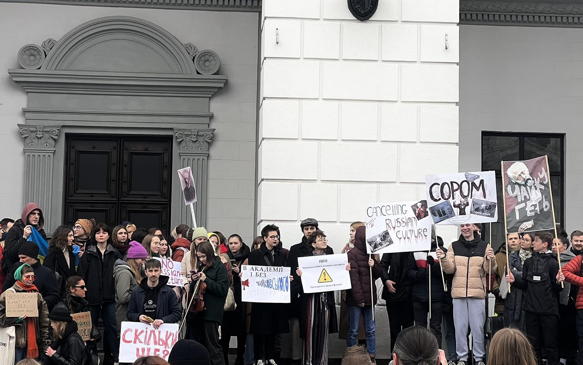 Студенти консерваторії імені Чайковського вимагають перейменувати заклад та прибрати картини з символікою РФ Крутько Дар'я · 17.3.2023 · 9:35 акція протестуКиїв