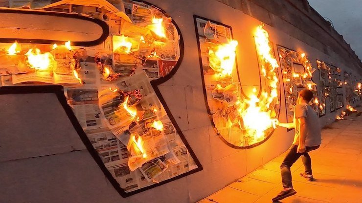 На набережній в Києві запалили графіті з передвиборчих агіток (відео) Стасюк Ірина · 26.10.2020 · 12:11 графітімісцеві виборимісцева політика