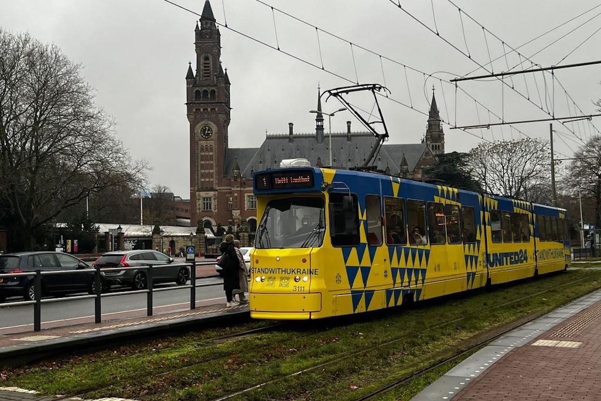 Трамвай у кольорах України курсує повз будівлю Гаазького суду Стасюк Ірина · 24.12.2022 · 12:38 ВійнадопомогаНідерланди