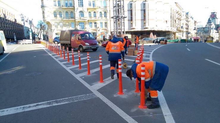 Вулицю біля палацу «Україна» відгородили стовпчиками від стихійних паркувань Ріта Дудіна · 23.2.2019 · 13:19 ПаркуванняЦОДР
