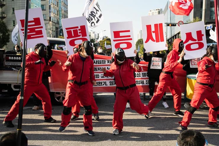 В Сеулі робітники страйкують у костюмах із «Гри в кальмара». Кажуть: реальність така ж, як і серіал Стасюк Ірина · 22.10.2021 · 12:04 Південна кореяУмови праці