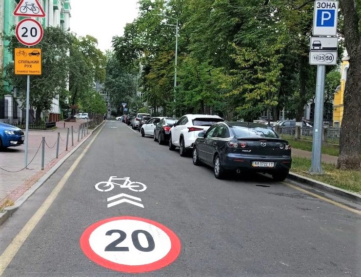 У Києві з’явилася перша спільна вулиця для велосипедів і автівок з обмеженням швидкості 20 км/год (фото) Стасюк Ірина · 12.7.2021 · 16:39 ВелоінфраструктураВелосипед